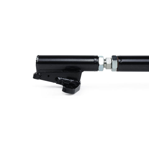 This Front Strut Bar from Pro Car Innovations (PCI) is designed for the 2002-2006 Acura RSX and 2001-2005 Honda Civic (EX/LX/DX). This strut bar is made from 1.25" DOM tubing for a rigid, robust brace on the front of the RSX/EM2/ES1. Finished in a Gloss Metallic Black powder coat to help avoid any corrosion, this strut retains both function and form. The strut bar is specifically designed for the PC Top Hats but may work with other top hats by using longer bolts and studs, while the OEM threaded studs must be removed on the shock tower to install this strut bar. The PCI Front Strut Bar comes with mounting hardware and uses a preload adjuster bar for fine-tuning the fitment of the brace.