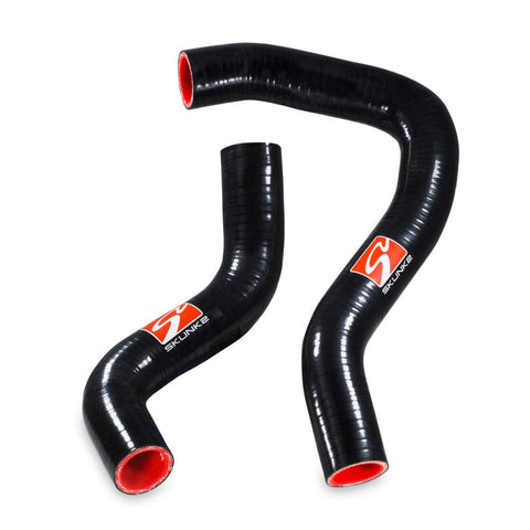 Skunk2’s Fine Tuning products and accessories, like its Silicone Radiator Hoses for the ’02-’05 Civic Si, help put the finishing touches onto your vehicle you work so hard to make perform well. Liven up your engine bay and give yourself some peace of mind while you’re at it with one of Skunk2’s Silicone Radiator Hose Kits. Unlike OEM rubber cooling hoses that must be periodically replaced because of deterioration caused by heat and pressure, Skunk2 silicone hoses will outlast the life of your engine. And with their glossy black finish, red interior, and Skunk2 logo, they’ll look good while doing it. Skunk2 Silicone Radiator Hoses are handmade using high-quality, automotive-grade silicone and feature cutting-edge, multi-layer, embedded fiber linings that’ll resist even the most abusive engine temperatures and pressures. Each application has been test-fitted for accuracy, as well as for an OEM fit, and has been subjected to rigorous tests and inspections to ensure years of worry-free operation. All Skunk2 radiator hoses are compatible with each vehicles OEM water housings, radiator necks, and OEM hose clamps. Youre going to have to replace those OEM radiator hoses sooner or later. Do your engine bay a favor and upgrade it with a Skunk2 Silicone Radiator Hose Kit.