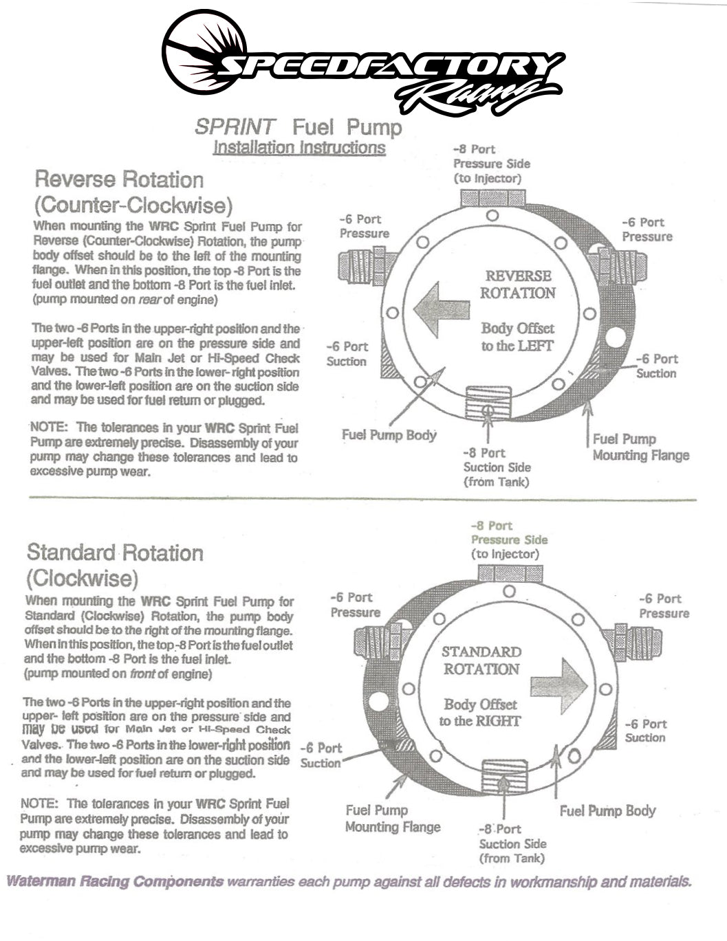95% of people DO NOT need this much fuel and we recommend the Waterman Sprint 500 fuel pump (Or Weldon 34704) pump as they are rated at 4.8gpm at 4000 pump rpm (1300hp on methanol/2500hp on gasoline) by the manufacturer. Flow rate on this pump at 10.5k rpm engine speed will be about 6gpm (1600+hp on methanol/3100+hp on gasoline) - plenty of fuel for most applications.